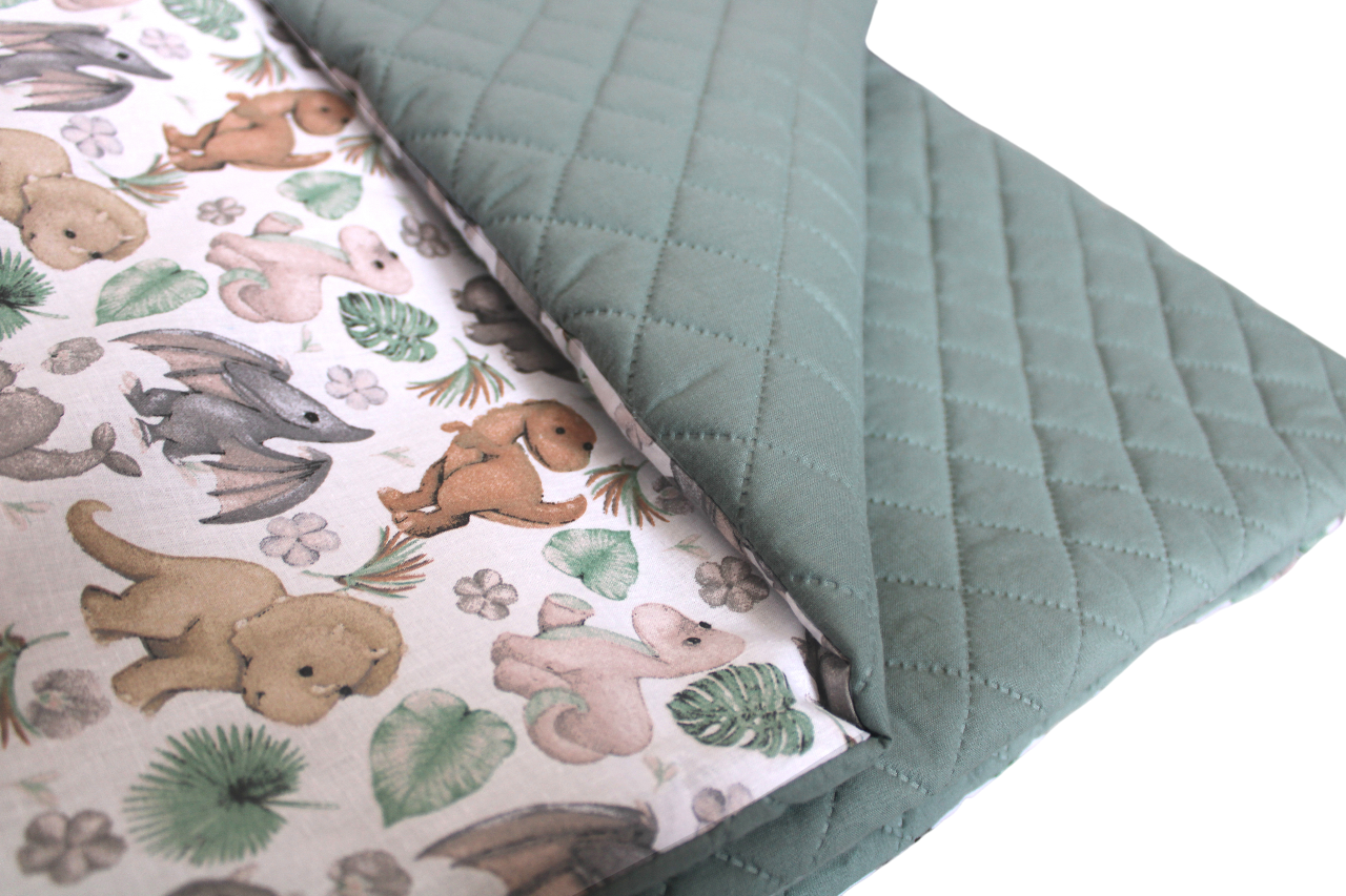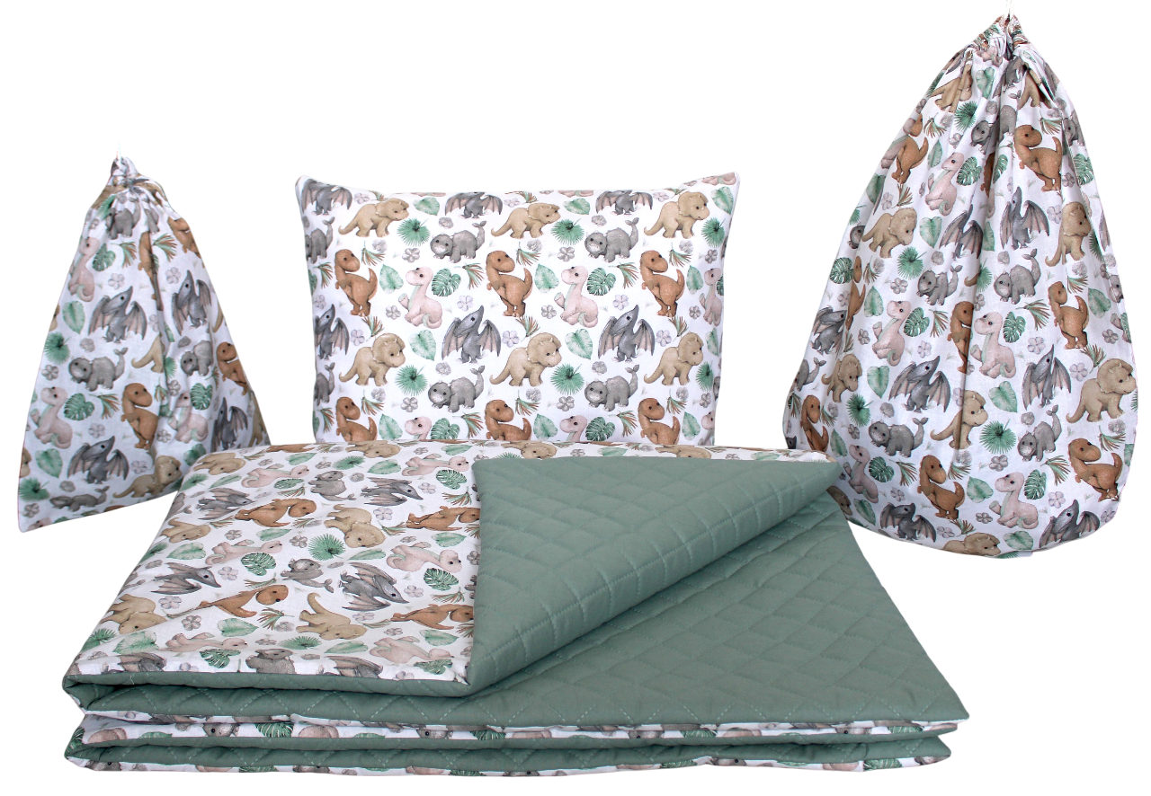 Komplet przedszkolaka DINO 5 częściowy: dinozaury brązowo szare + pikowana szałwia (szarozielony)