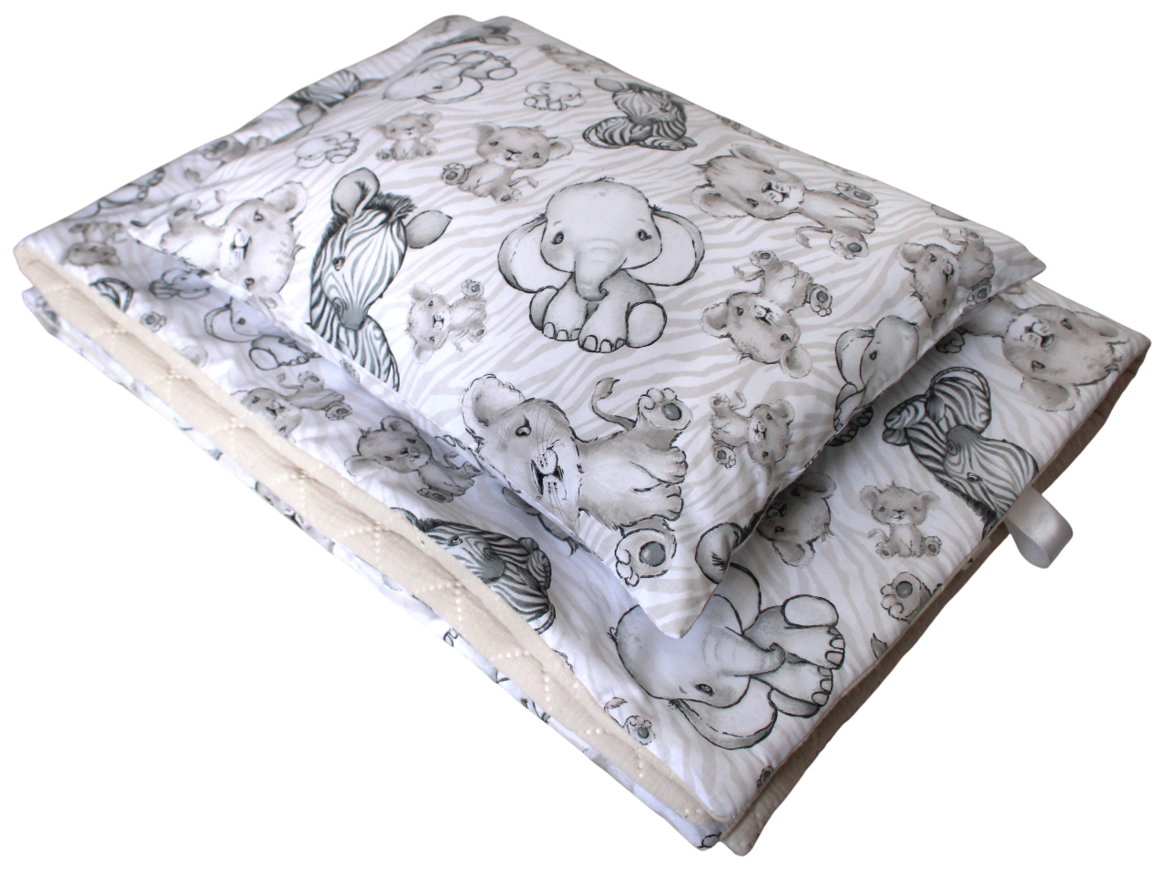 - poduszka ma zdejmowaną poszewkę zapinaną na kryty zamek, a kołderka jest w całości