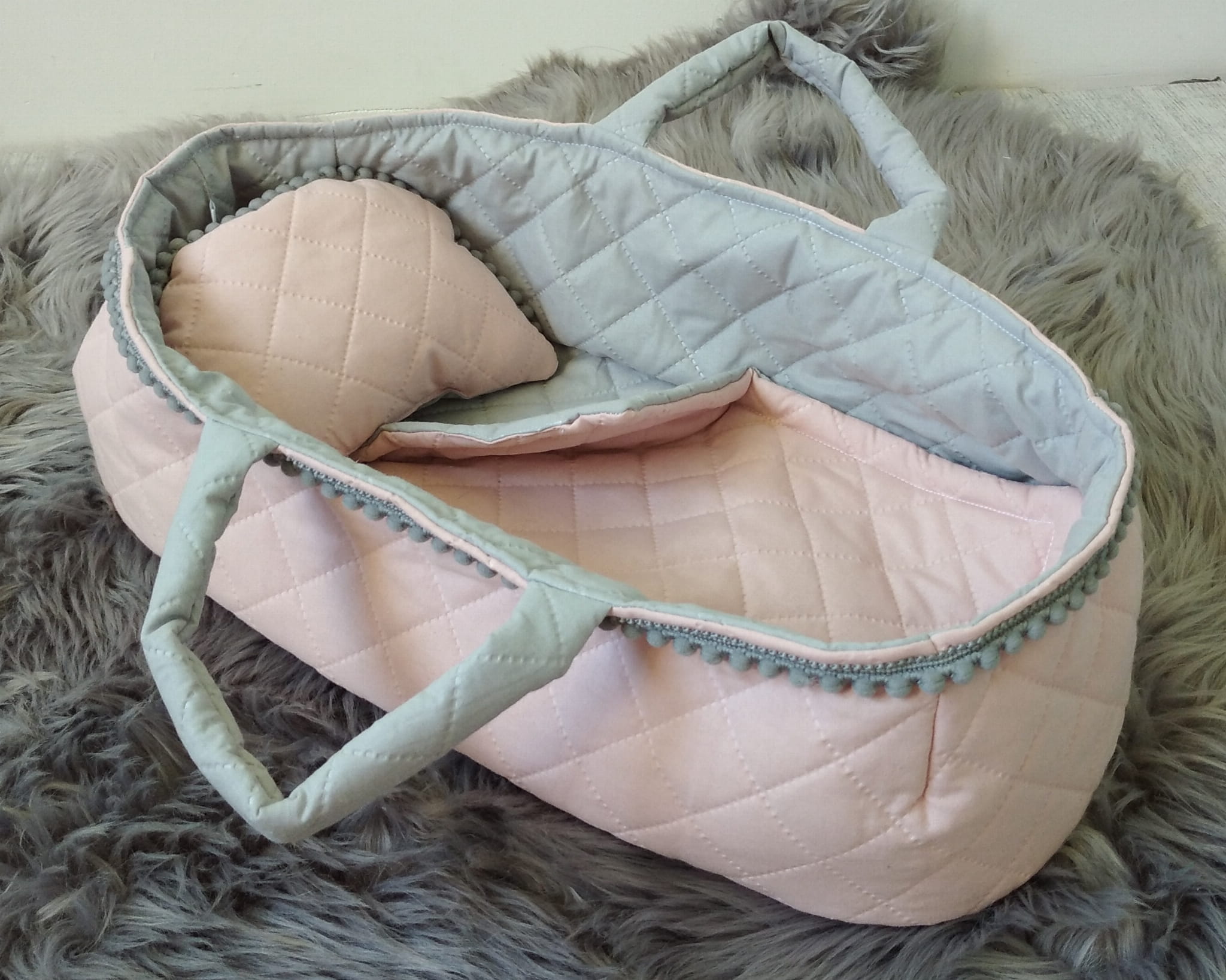 ZESTAW: nosidełko dla lalki z poduszką i kołderką + torebka wykonane z wysokiej jakości 100% bawełny pikowanej