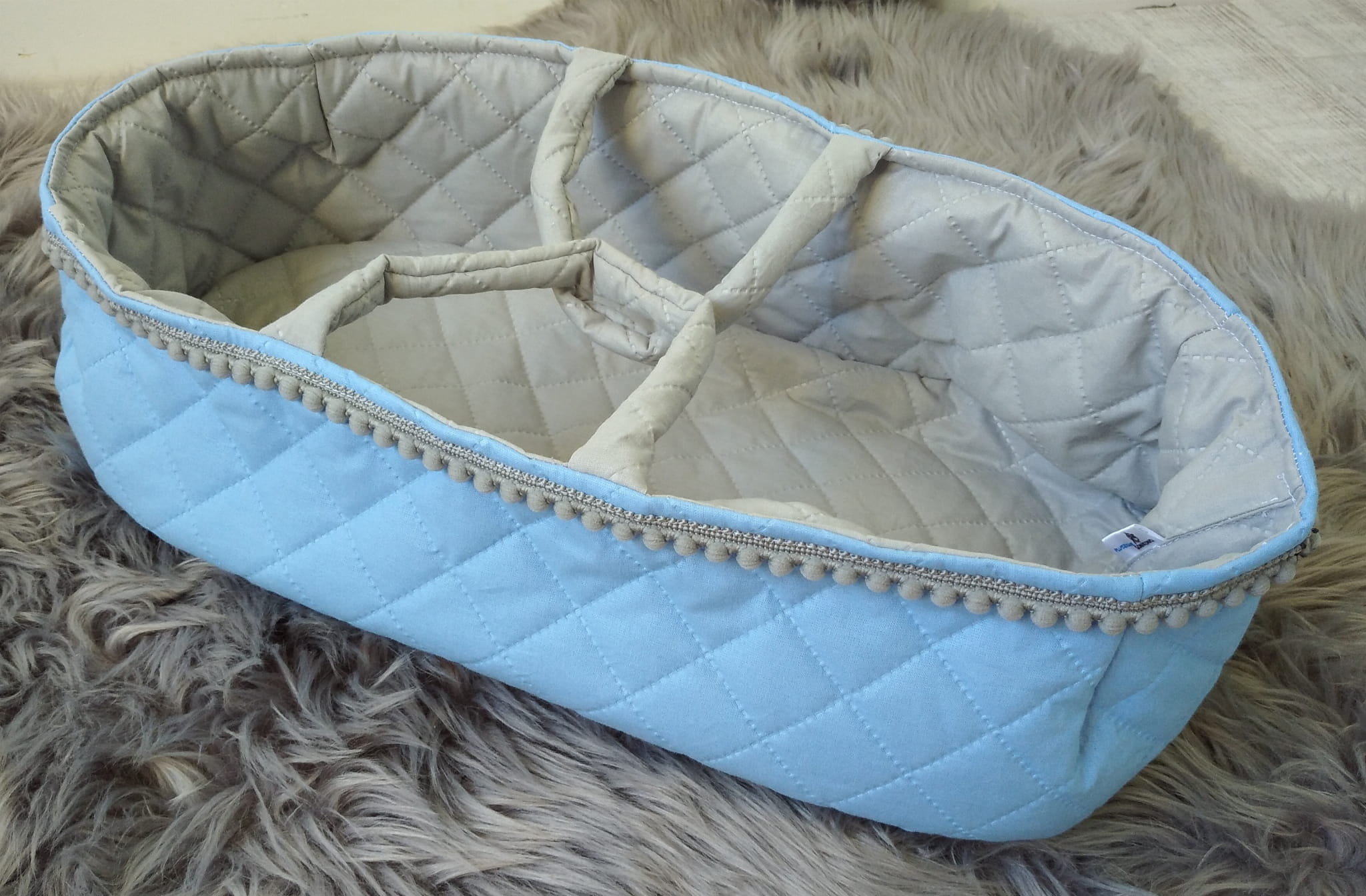 Nosidełko, kołderka i poduszka wykonane są z dwóch stron z 100% bawełny pikowanej. Wypełnienie to antyalergiczna silikonowa owata, która lekko usztywnia nosidełko, ale nadal jest miękkie i bezpieczne.